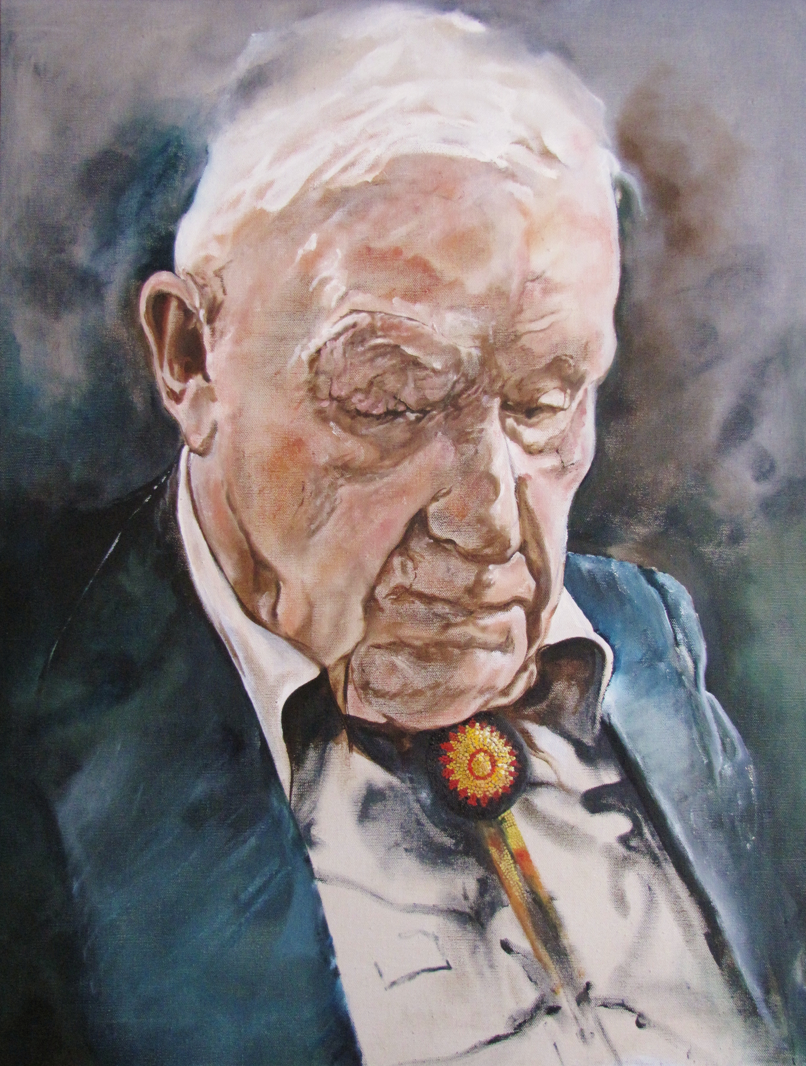 This is an oil completed many years ago while in my early learning stages of painting and drawing. Yet, are we ever done learning? Part of my self instruction in the beginning was to copy and this was taken from a published photograph. Therefore, I was never able to use this for exhibition or for sale. I learned a lot by examining the work of others. The goal at the time was to try and capture the tender portrayal by the photographer of a grandmother and small girl. I was taken by the dramatic light play across the subjects coming from one source, the window; and the added contrast of the darkened room. While I appreciated the work of the photographer, I began to add touches of my own personality.